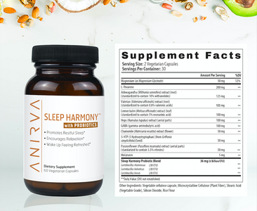 ANIRVA’S SLEEP HARMONY® is a scientifically formulated, natural sleep solution designed for those experiencing occasional sleeplessness*. This non-habit-forming supplement features a synergistic blend of 14 high-potency, scientifically backed ingredients including ashwagandha, L-theanine, melatonin, magnesium, passionflower, GABA, chamomile, and valerian to safely induce deep, restorative sleep. By calming the nervous system and promoting relaxation, Sleep Harmony™ helps reduce restlessness and tension so you can wake up refreshed, energized, and balanced — ready to take on the day.